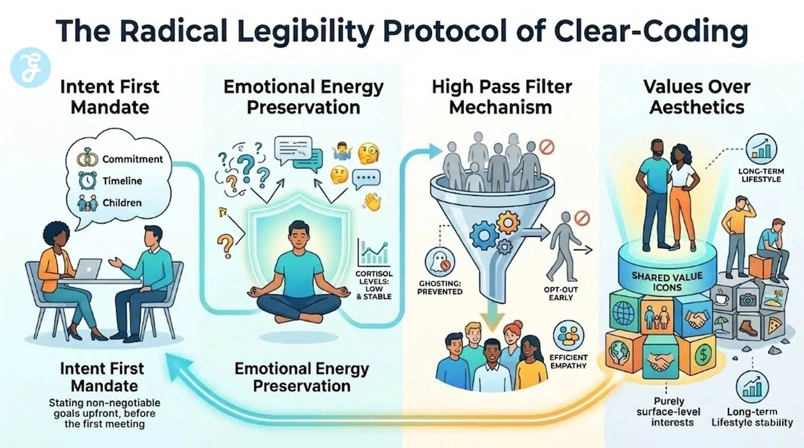 Clear-Coding is not a passing fad. It is a necessary evolution. We live in an era of infinite digital noise and shrinking mental bandwidth. We can no longer afford the luxury of being misunderstood. The “guessing game” of romance was a relic of a slower time. Today, efficiency is a form of empathy.