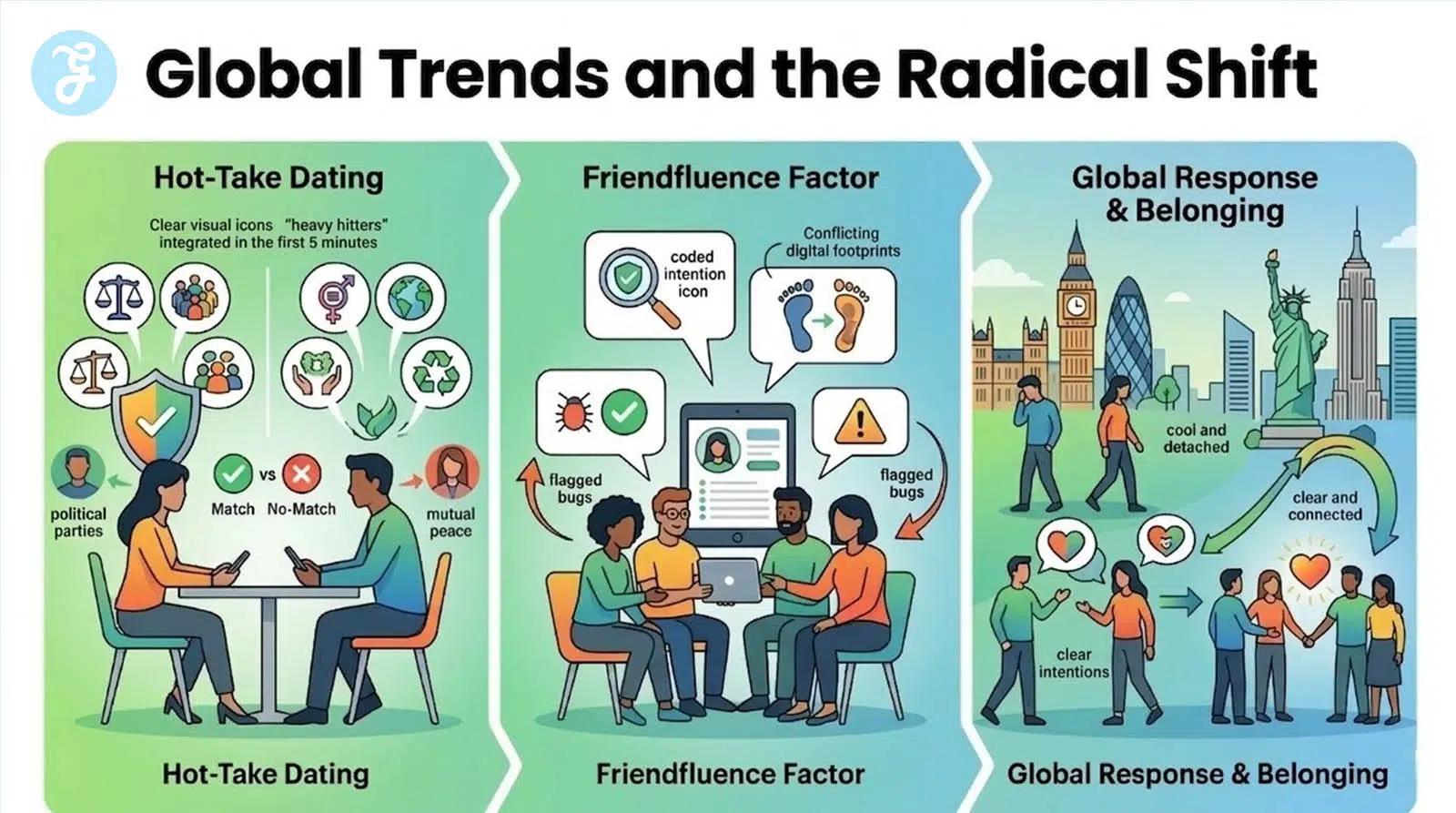 The impact of this shift is moving far beyond individual phone screens. In 2026, we are seeing the rise of Hot-Take Dating. This is the integration of heavy hitters into the first five minutes of contact. Political leanings, social values, and environmental deal-breakers are no longer “third date” topics. They are the header. People are using Clear-Coding to protect their peace by filtering out fundamental moral mismatches immediately. There is no longer a need to “agree to disagree” months into a connection.