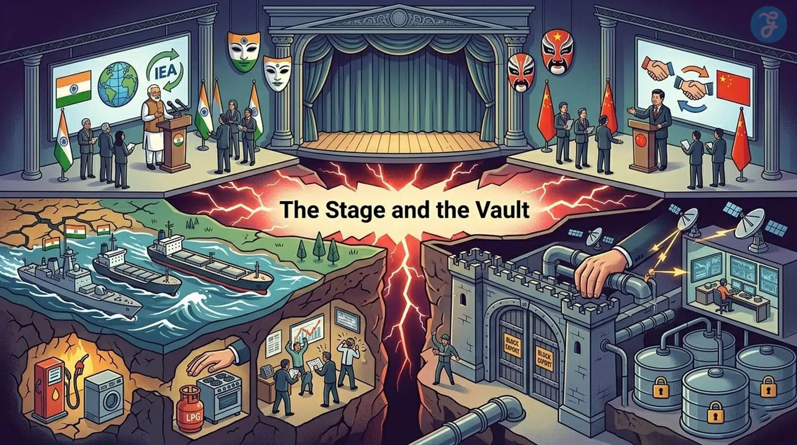 The 2026 fuel shock has created a diplomatic mask. While official speeches in New Delhi and Beijing preach regional cooperation, the reality is a cold calculation of survival hidden behind vault doors. Publicly, India appeals to the International Energy Agency for market stability, but internally, the state is in full damage control. Rather than projecting absolute power, New Delhi is forced into defensive manoeuvres, invoking the Essential Commodities Act and deploying naval escorts to protect merchant tankers, frantically prioritising the fragile civilian pumps and stoves over any illusion of strategic comfort.
