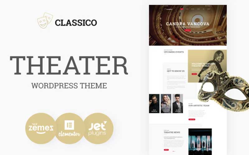 The Theater is a WordPress theme built with Elementor. It’s the perfect solution for showcasing your artistic team, latest theater news, upcoming events, and more.