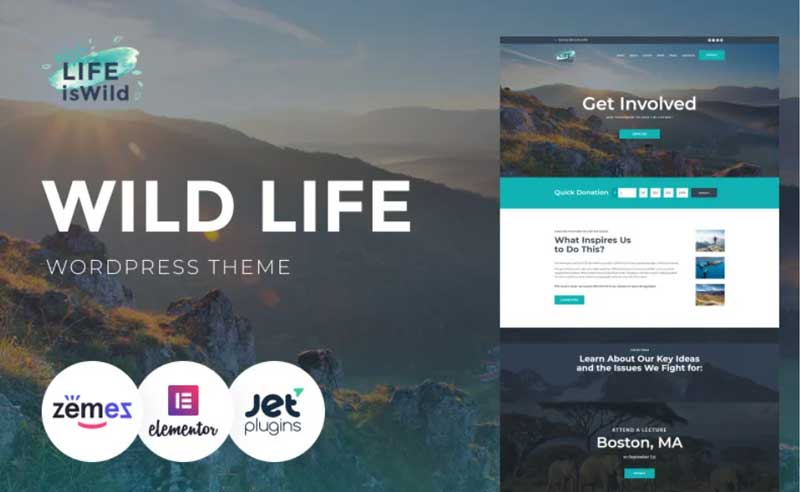 Lifewild is an Elementor events template suitable for conservation organizations, commercial and non-commercial institutions, and websites devoted to animals and nature.