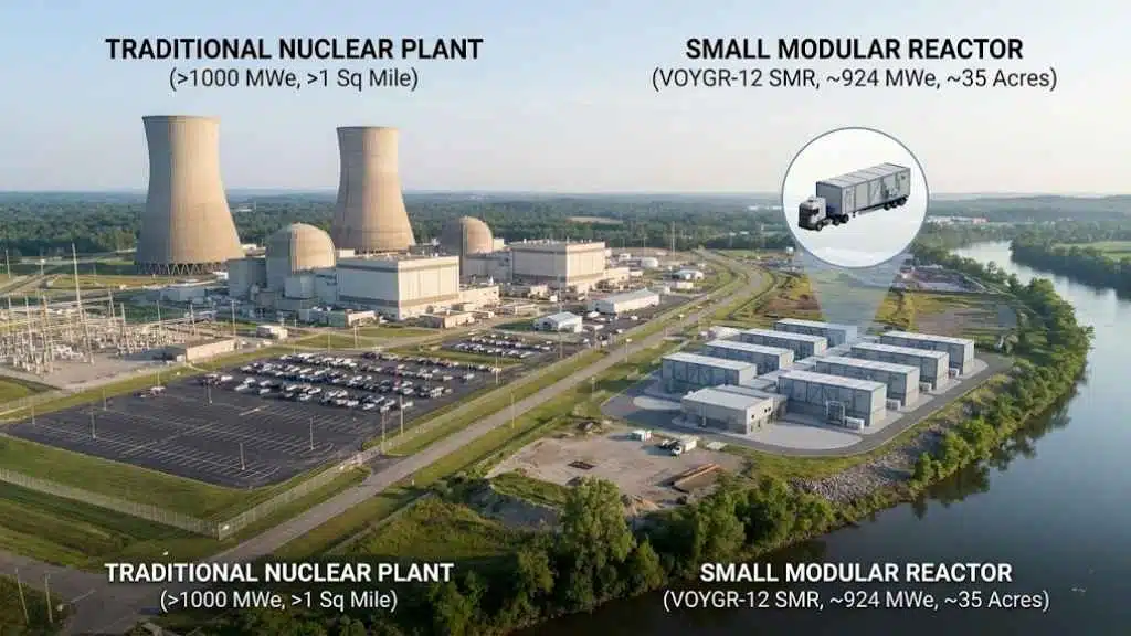 The footprint difference is stark. A traditional nuclear station might require over a square mile of land. An SMR facility like the VOYGR-12 requires roughly 35 acres for the actual plant site. This allows them to fit into retiring coal plant sites or next to large factories.