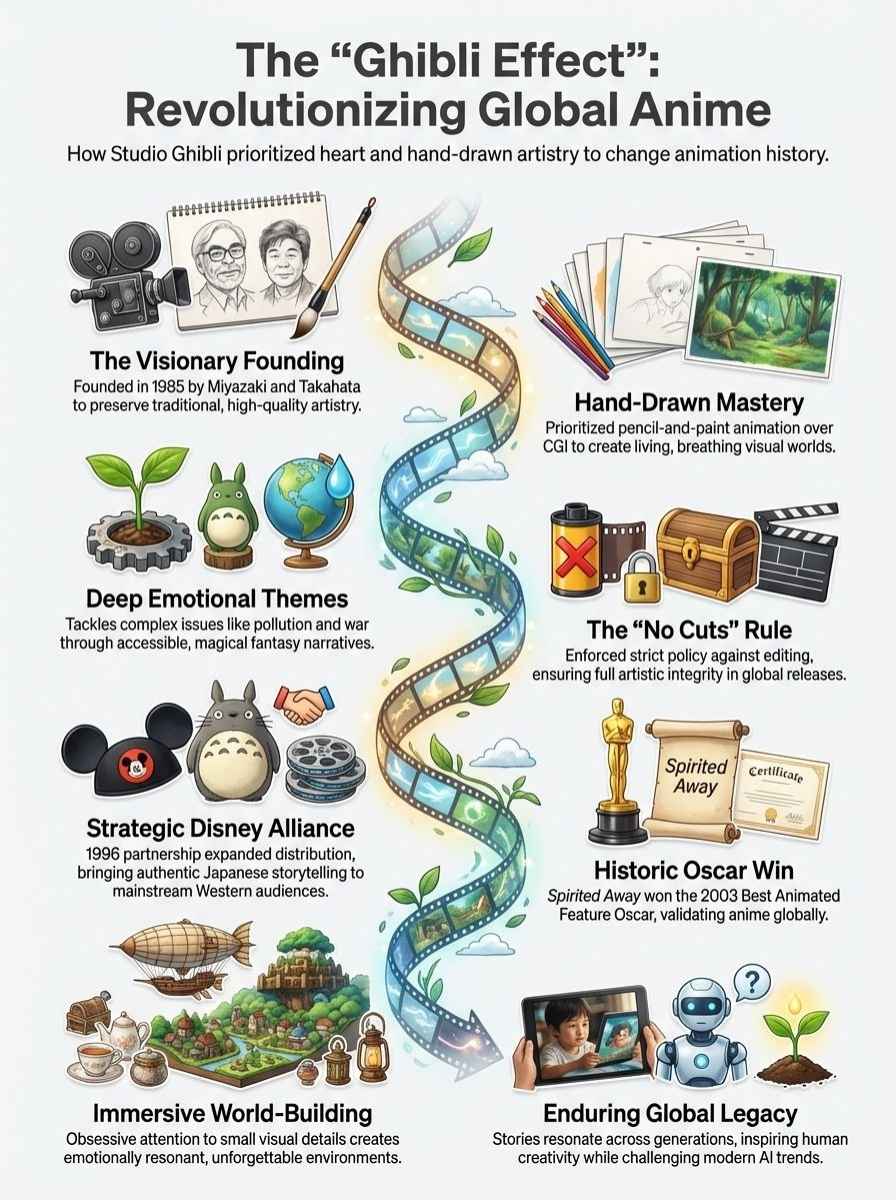 From humble beginnings and financial failures, Studio Ghibli grew into a powerhouse of animation. They showed us that a simple hand-drawn line can carry more emotion than a million computer pixels. Their legacy is built on the belief that we should respect nature, find magic in the quiet moments, and never compromise our vision.