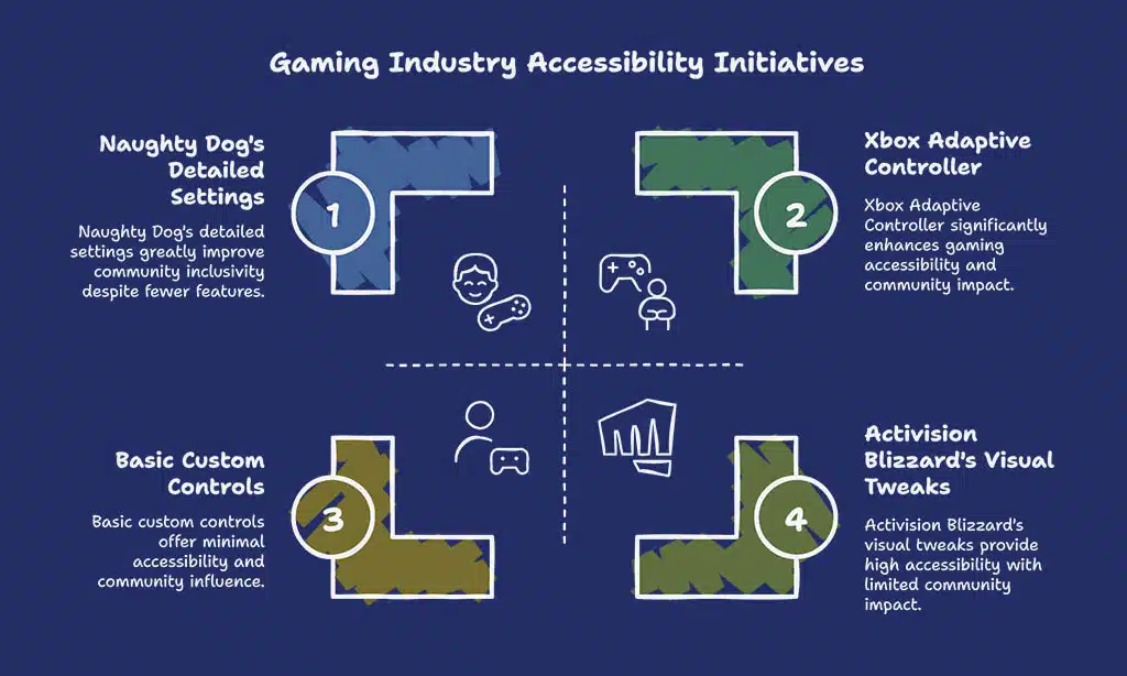 Naughty Dog leads the charge too, especially with The Last of Us Part II. This game offers detailed settings for vision, hearing, and mobility support. Developers now value disability inclusion more than ever.