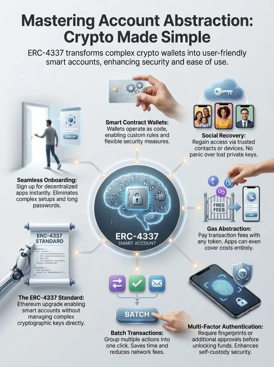 You know how frustrating it is to manage complex private keys or worry that one mistake could lose your funds forever. That fear is the single biggest barrier to entry for most people. Account abstraction removes this hurdle by introducing “Smart Accounts” that handle the heavy lifting for you.