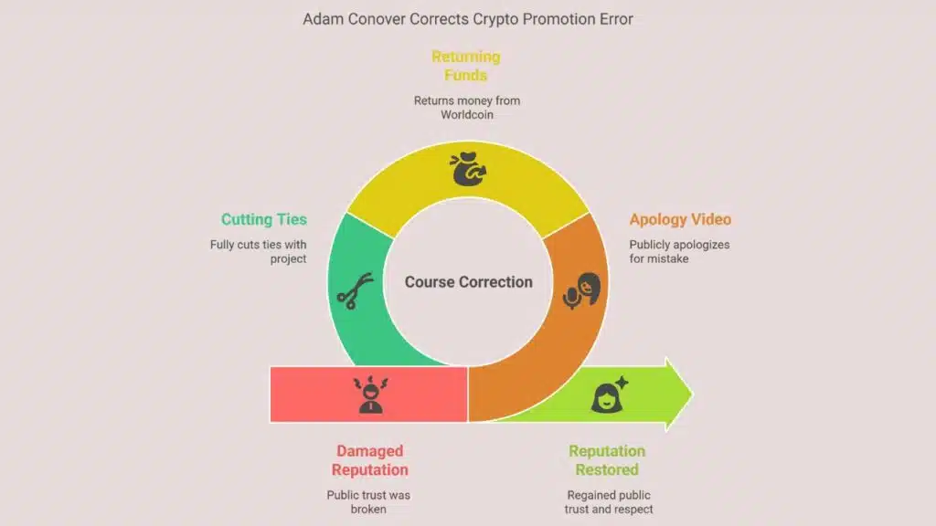 In a rare move among internet influencers, Conover stated that he is returning the money he received from Worldcoin and fully cutting ties with the project. He also thanked critics who called him out for his actions.