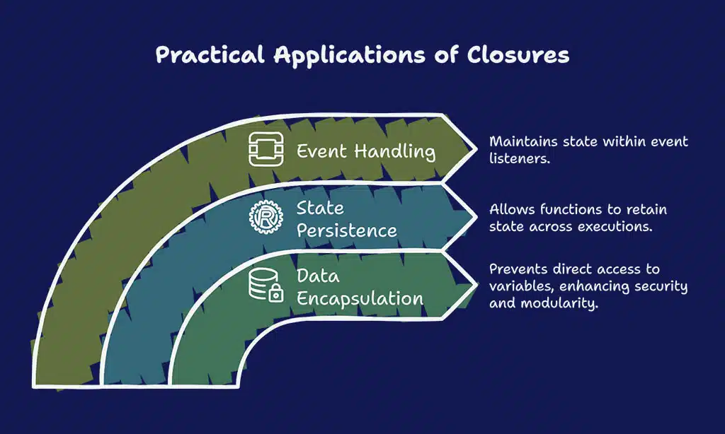 This is possible because JavaScript functions form a closure over their surrounding state. Closures are widely used in JavaScript to create private variables, manage state across function calls, and enable powerful design patterns such as currying and function factories. Mastering closures allows developers to write more modular, efficient, and maintainable code.
