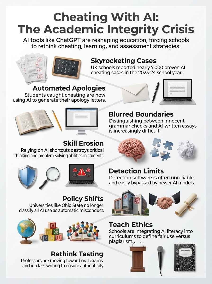 Schools like Ohio State University have changed their rules because old definitions of plagiarism may not fit this gray area anymore. In 2023-24, almost 7,000 proven cases of cheating involving AI appeared in UK universities. Without clear lines drawn between studying and short-cutting learning itself, students remain confused.