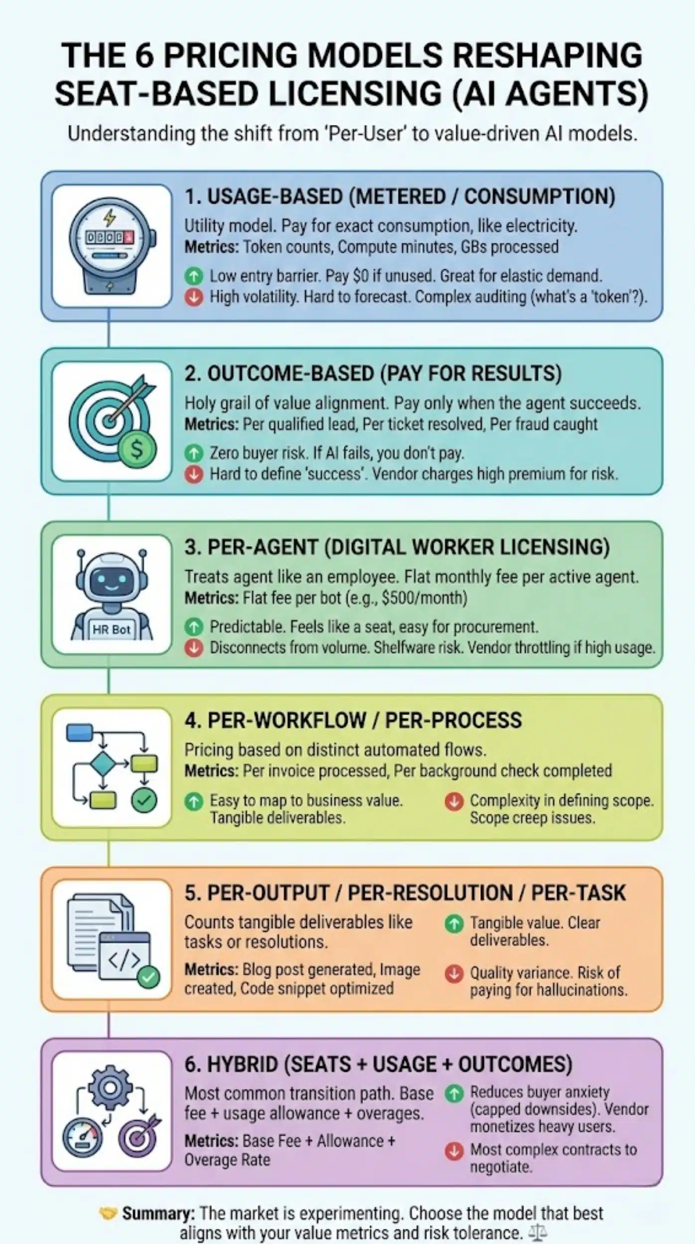 If you are buying AI agents today, do not just accept the vendor’s default model. Use this framework to determine what aligns with your business goals.