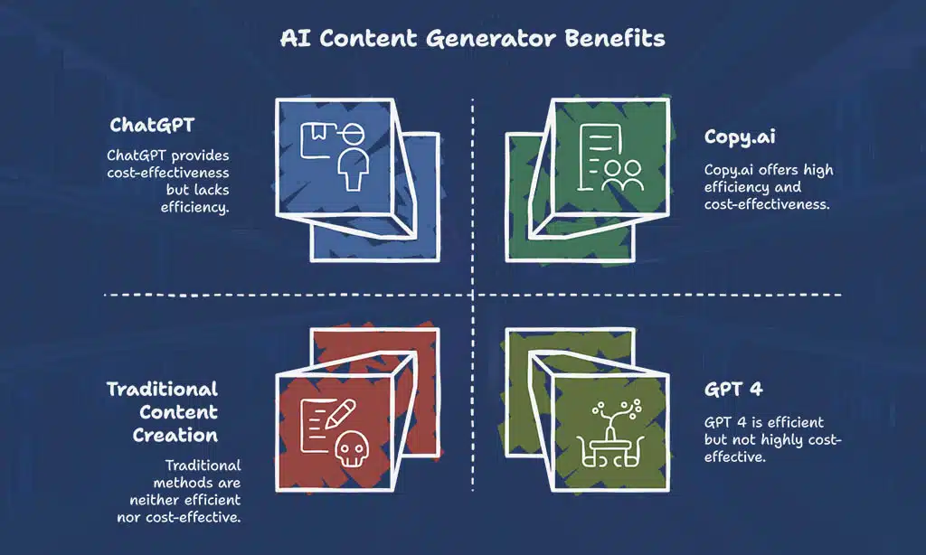 AI content generators act like a Swiss Army knife for content creators. They churn out blog writing, social media posts, long-form content, even ai-generated images and video clips.