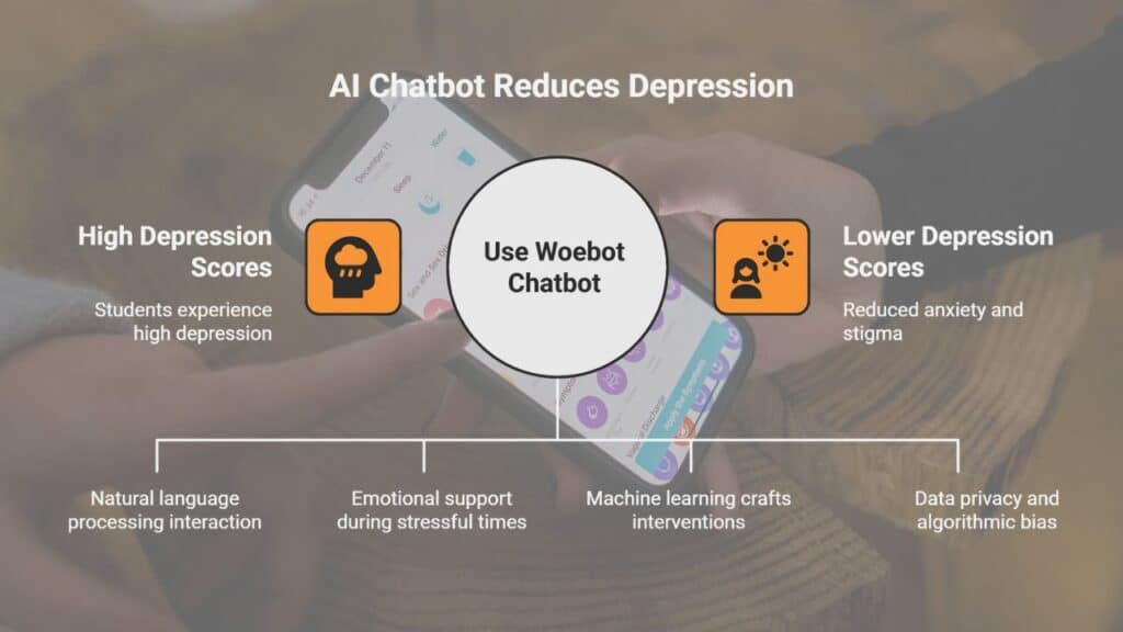 Studies on Woebot show real gains. Woebot cut depression symptoms in college students within two weeks. Youper tested more than 4,500 users. It showed moderate reductions in anxiety and depression.