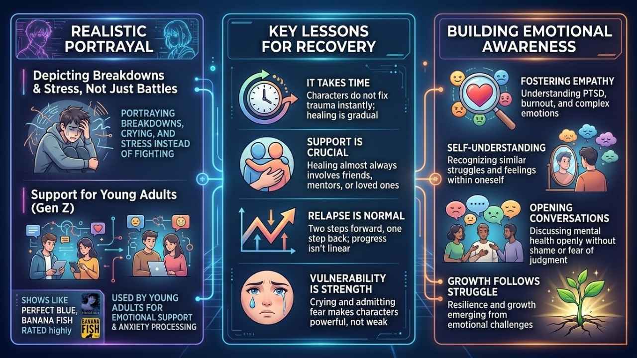 Creators use storytelling to pull viewers into these heavy emotions. Fans see heroes break down crying or freeze up from stress instead of just fighting epic battles. Over 1,000 fans consistently rate shows like Perfect Blue and Banana Fish as top choices for real portrayals of mental illness.