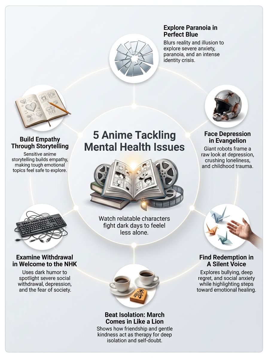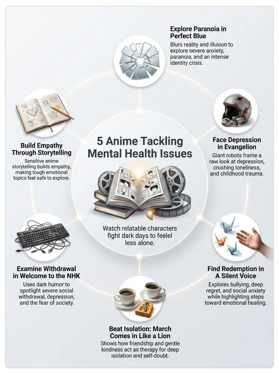 These 5 anime that tackle mental health issues shine a light on anxiety, depression, and healing in ways that feel incredibly real. Each show uses powerful stories that anyone can relate to, making tough topics much easier to discuss with friends or even yourself. Are there moments from these shows that changed how you think about your own feelings?