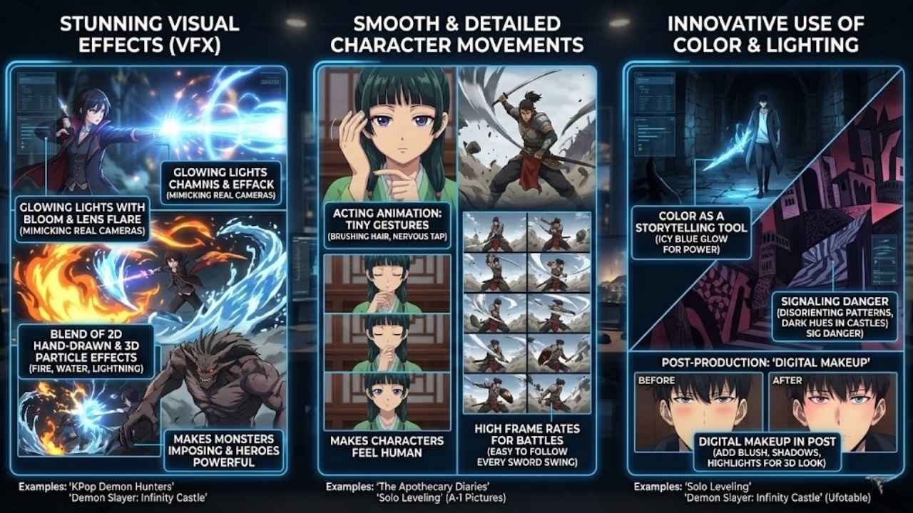 Top contenders like The Apothecary Diaries and Solo Leveling stood out because they mastered specific technical elements. When critics and fans talk about “quality,” here is exactly what they are looking for: