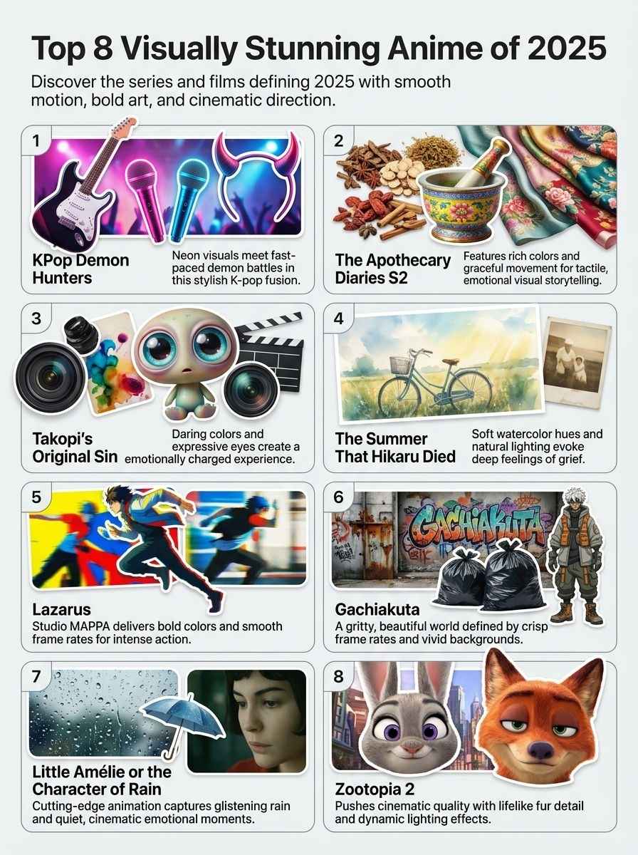 You just explored the top 8 anime with stellar animation in 2025, from the neon lights of KPop Demon Hunters to the gritty streets of Gachiakuta. Each series showed off smooth movements, bright colors, and fresh art styles. If you want to upgrade your viewing experience, pick one of these shows for your next night in.