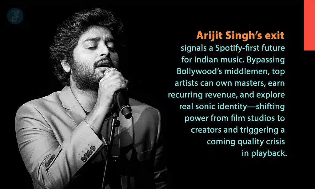 Arijit Singh’s departure isn’t just a personal pivot; it’s the “Beta Test” for the future of the Indian music economy. For decades, Bollywood was the only distributor that mattered; if you weren’t on a film soundtrack, you were invisible. But the Rs 414 crore exit has proven that the umbilical cord can be cut. We are witnessing a “Spotify-first” migration where the industry’s top voices stop auditioning for film directors and start programming directly for their fans.