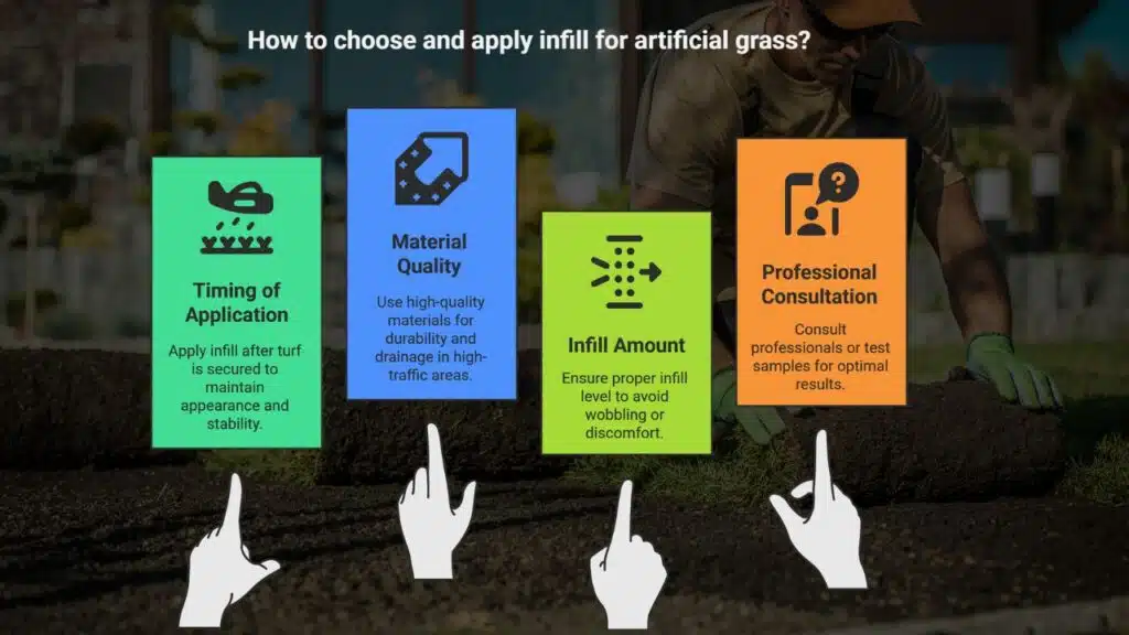 Now, picking top-notch infill for high-traffic areas is a big deal. Go for high-quality materials that support the grass blades and help with proper drainage. Too little infill, and your fake turf might wobble; too much, and it feels weird underfoot.