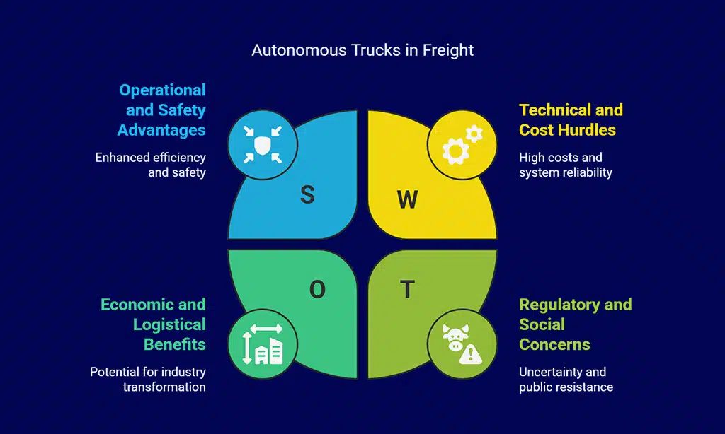 Autonomous trucks stand at a crossroads between revolutionary potential and significant hurdles. Let’s break down what’s at stake for the freight industry.