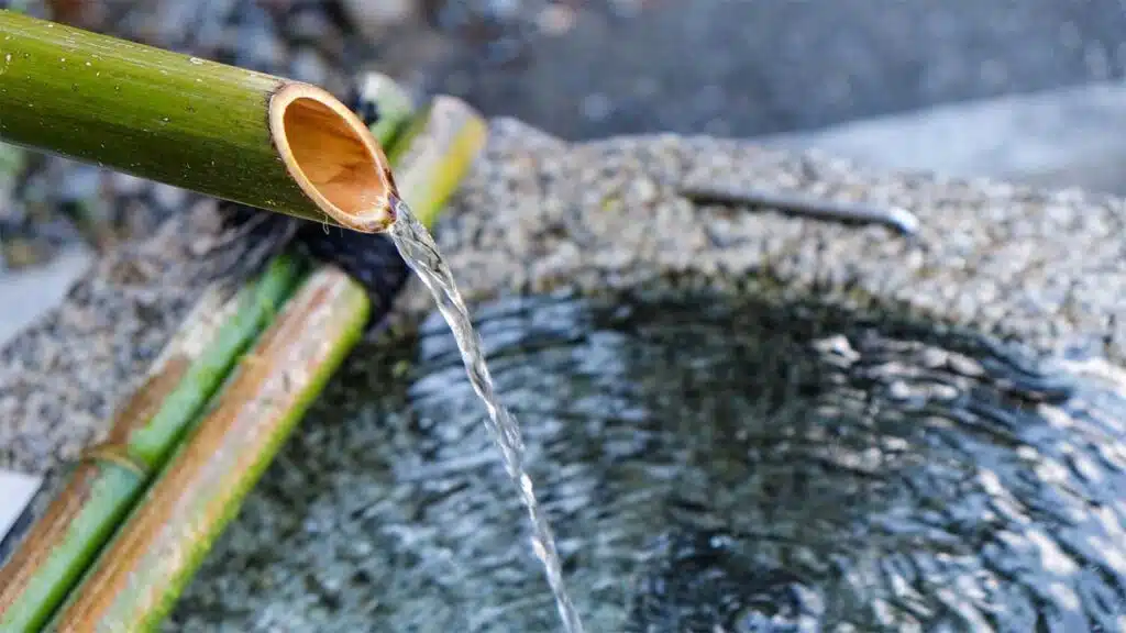 A zen garden waterfall is often paired with elements like bamboo, gravel, and stones to create a peaceful, meditative space.