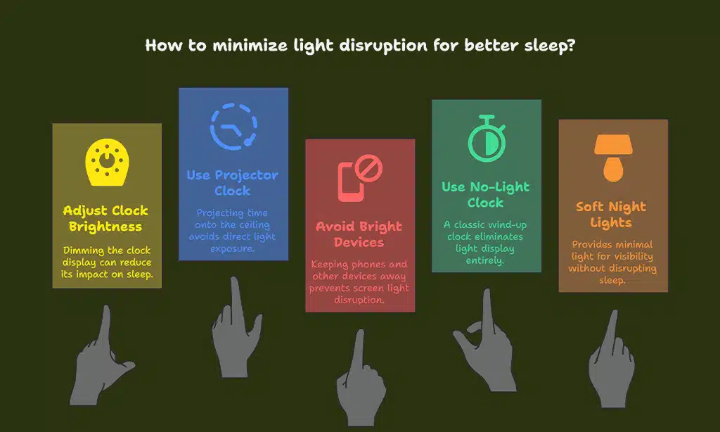Bright displays on digital clocks can disturb your sleep. These lights may seem small, but they can keep you awake.