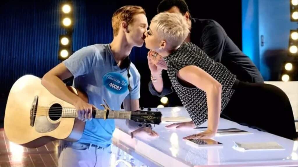 - In response, Katy Perry leaned forward and kissed him on the lips, sparking a viral TV moment.