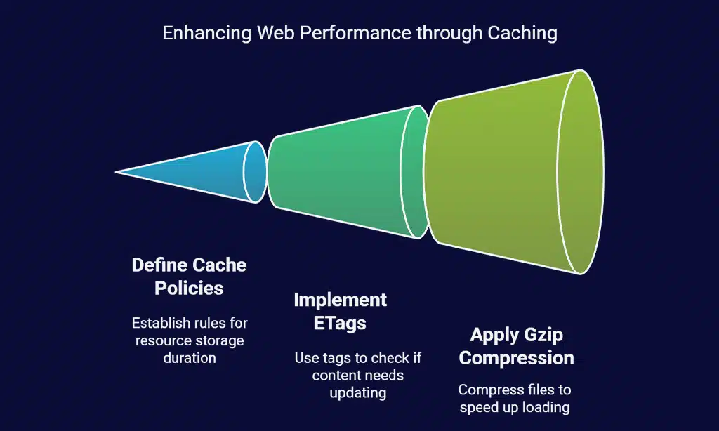 | Browser Caching | Stores static files like images, CSS, and JavaScript on a user’s device for faster retrieval. |