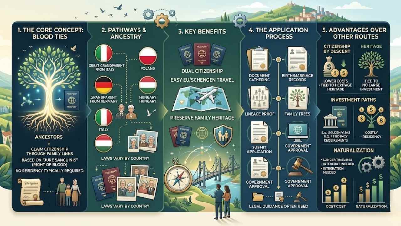 People gain citizenship by descent, or CBA, through family links to a country. This path skips big investments or long stays. You prove your ties with birth records and other papers.