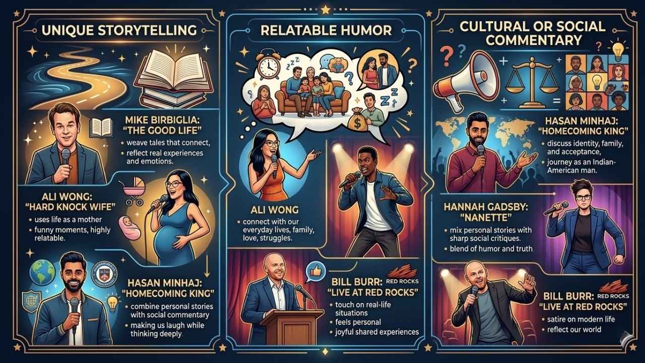 Relatable humor connects with our everyday lives. Comedians like Ali Wong and Chris Rock share stories that feel familiar. They talk about family, love, and struggles we all face. This type of comedy makes us laugh at things we know too well.