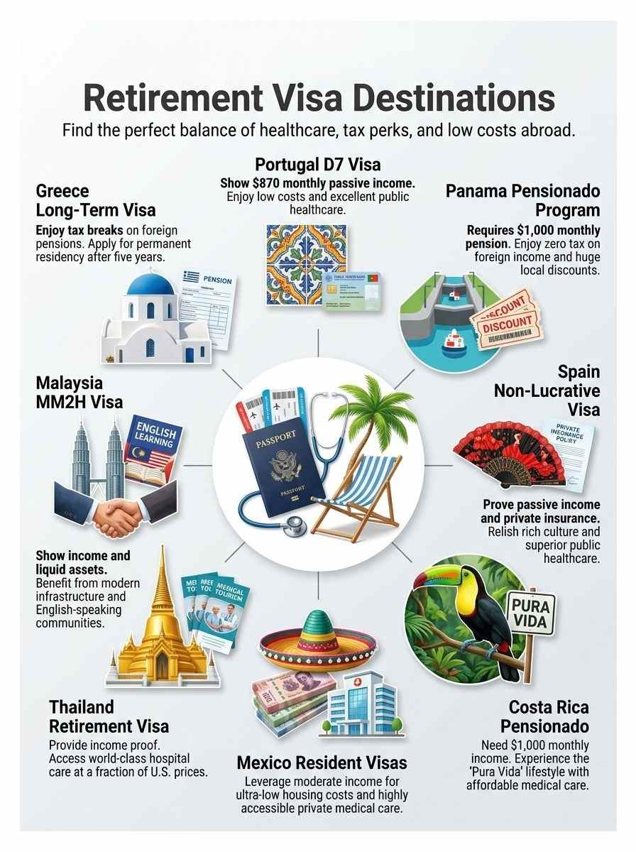 You’ve explored top spots like Portugal’s D7 visa and Panama’s Pensionado program, each with low income needs and paths to citizenship. These options make retiring abroad simple and smart, cutting costs while opening doors to better healthcare.