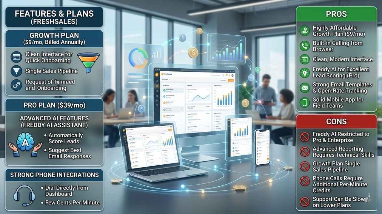 • Freddy AI tools provide excellent lead scoring on Pro plans.