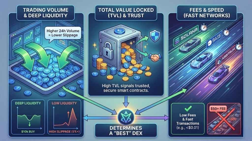 • Fees & Speed: In 2026, paying $50 for a transaction is unacceptable. We prioritized DEXs that work on fast networks like Solana, Base, and Arbitrum.