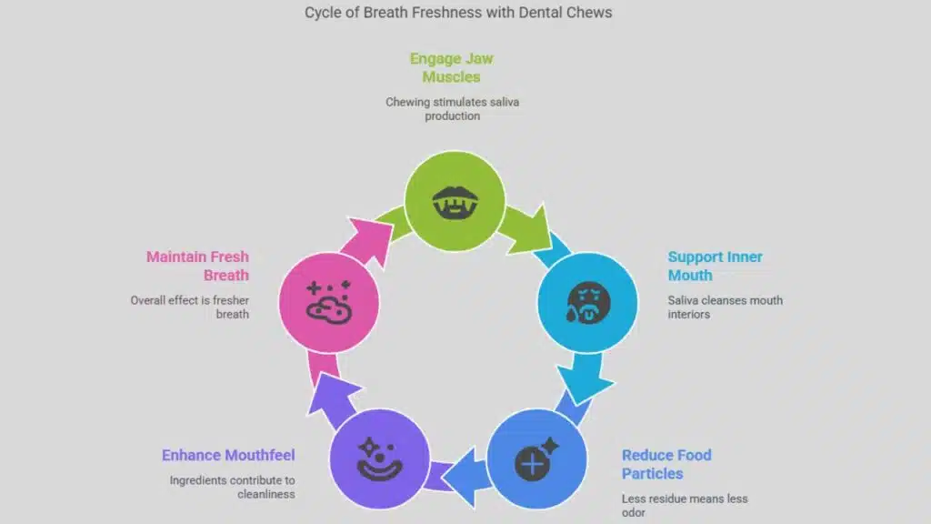 Chewing on a dental chew engages more than just the jaw—it supports the inner parts of the mouth, too. When food particles are not left behind, the air that flows from the mouth tends to carry less odor. The ingredients used in dental chews can also add to the overall effect, contributing to a cleaner mouthfeel. Many pet owners prefer dental chews for their simplicity and ease of use, especially when brushing may not be an option every day.