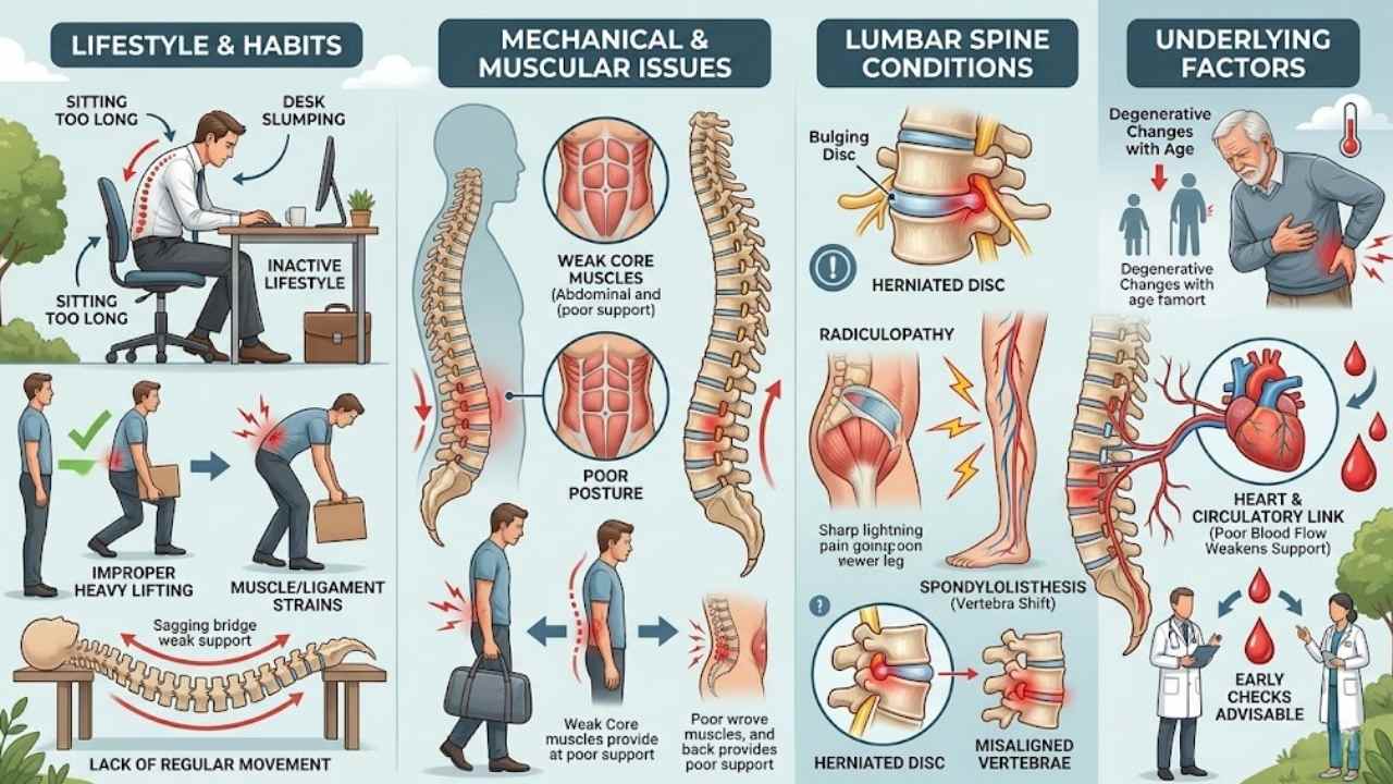 Orthopedics experts, such as those from the American Academy of Orthopaedic Surgeons, point out how everyday slips, like sitting too long at a desk, spark these troubles. Even heart and circulatory diseases tie in sometimes, as poor blood flow weakens back support.
