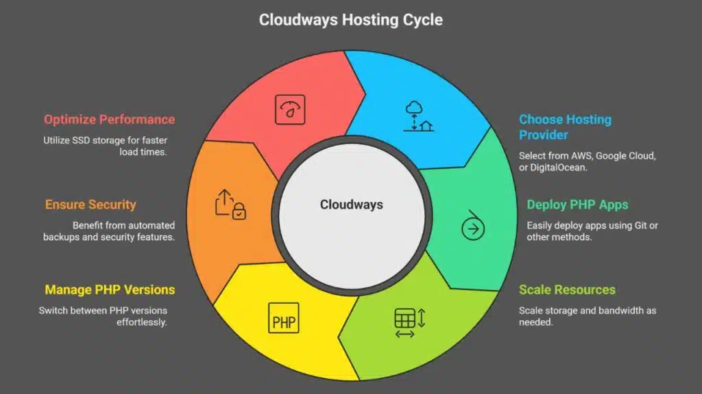 Cloudways runs your PHP apps on providers like AWS EC2 or DigitalOcean Droplet, with no messy server setup. You push code with Git or spin up a Google Cloud Compute Engine, and steer clear of config headaches, while you build Laravel or WordPress sites with SSH access and MySQL databases.