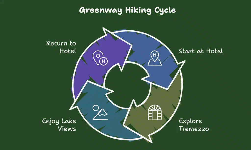 The path winds through historic streets in Tremezzo, with gardens and villas along the way. Hikers pass olive trees, stone bridges, and quiet paths. It’s perfect for both beginners and seasoned hikers seeking beauty without steep climbs.
