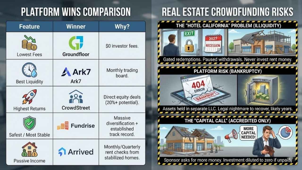 In direct deals (CrowdStreet), if the roof collapses, the sponsor might issue a “Capital Call,” asking you for more money to fix it. If you don’t pay, your original investment can be diluted to zero.