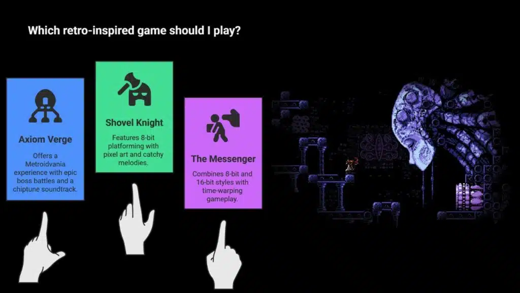 Axiom Verge earns its spot among the best retro-inspired games of this generation. It plays like a Metroidvania masterpiece with epic boss battles and a chiptune soundtrack. Gamers spot nods to Metroid Prime and Samus Aran’s legend.