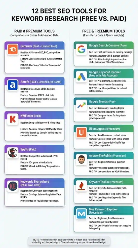 12 Best SEO Tools For Keyword Research (Free Vs Paid)