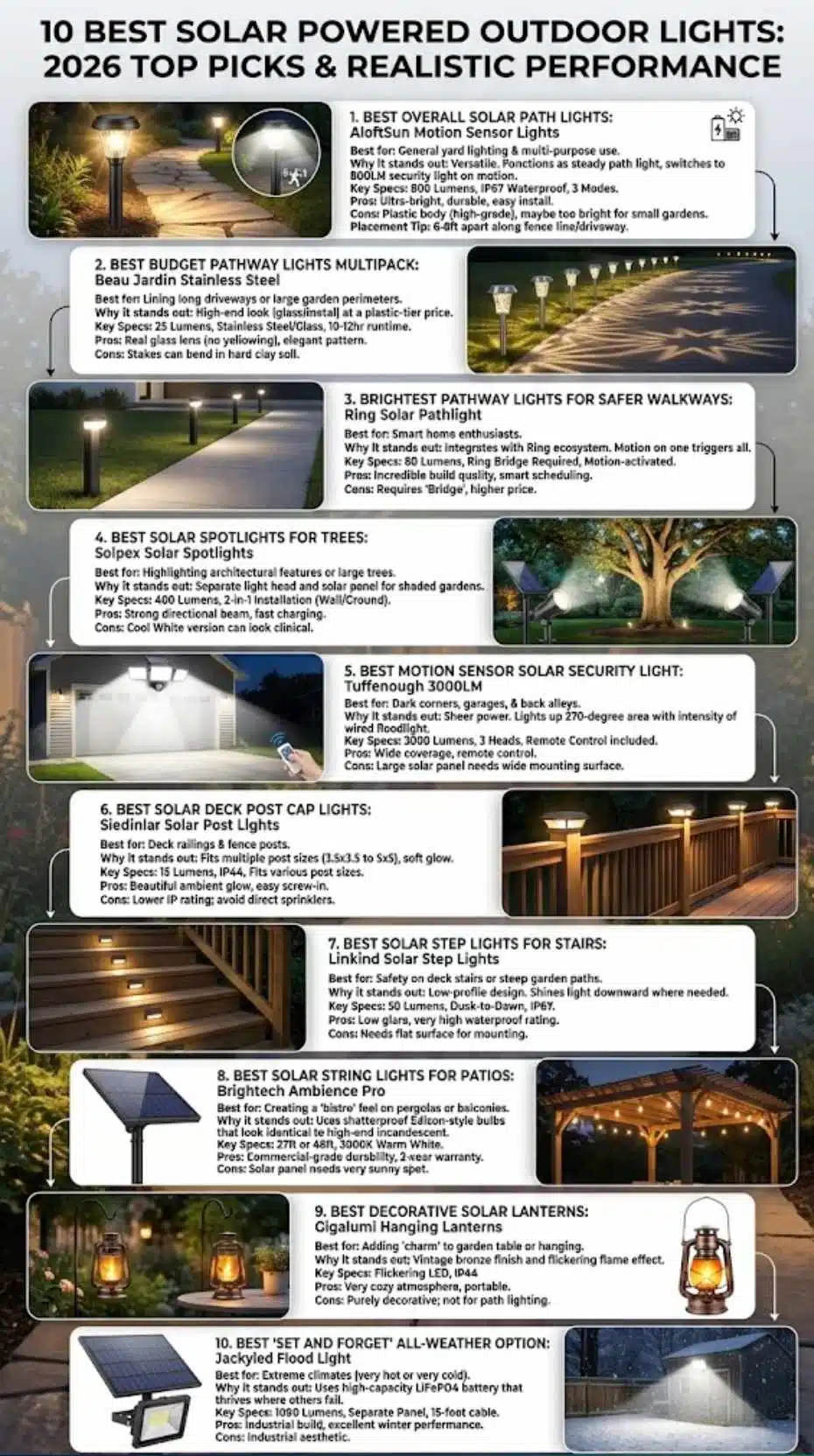 Gone are the days when solar lights were dim, flickering plastic stakes that died after the first rainstorm. In 2026, advances in monocrystalline solar panels and LiFePO4 battery technology have made solar lighting a legitimate competitor to hardwired systems. Whether you want to highlight a prize-winning Japanese Maple or stop fumbling for your keys at the front door, there is a solar solution that actually works.