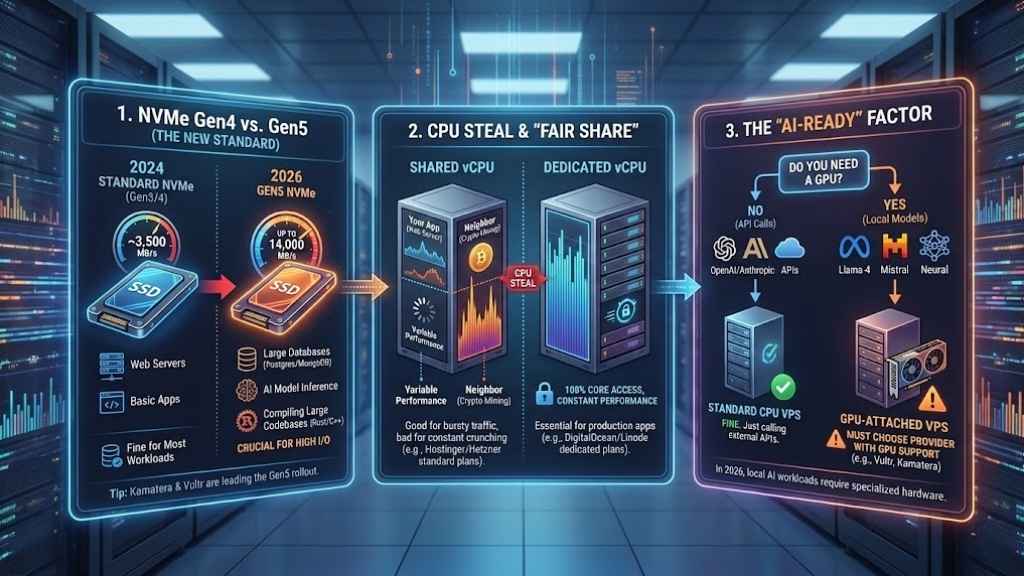 If you are still looking for “SSD storage” and “1GB RAM” as your primary metrics, you are living in 2023. In 2026, the baseline for a developer-grade Virtual Private Server (VPS) has shifted dramatically. With the explosion of AI-assisted coding, containerized microservices becoming the default for even small apps, and the widespread adoption of PCIe Gen5 NVMe storage, “performance” now means something entirely different. Latency is the new currency.