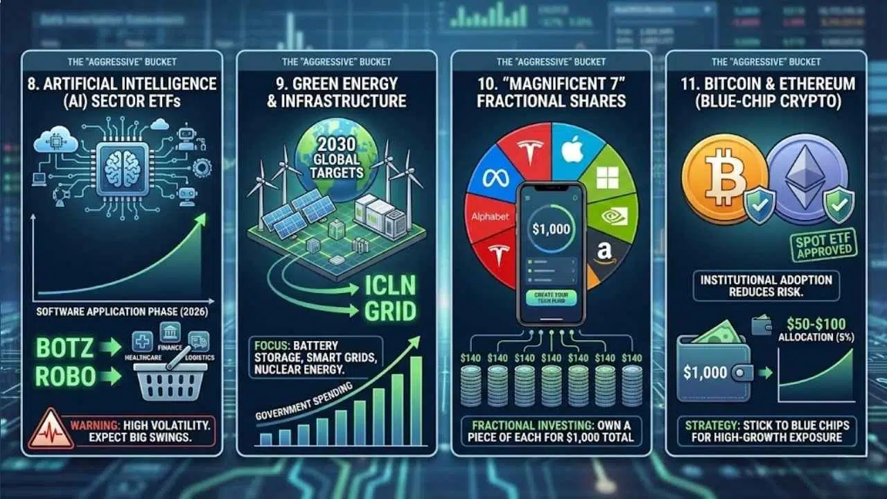 - Fractional Investing: A single share of some of these companies can cost hundreds of dollars. With your $1,000, you can create your own “Tech Fund.”