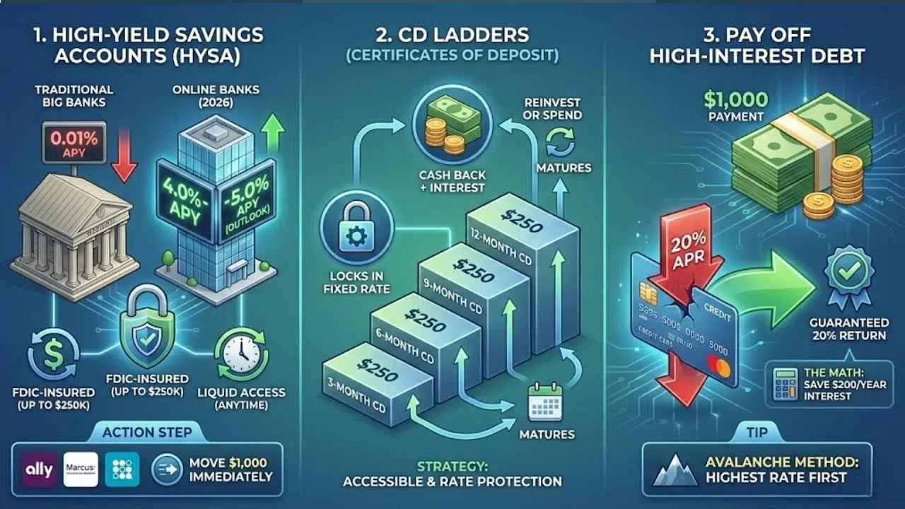 - Action Step: Check banks like Ally, Marcus, or SoFi. Move your $1,000 there immediately to start earning interest daily.