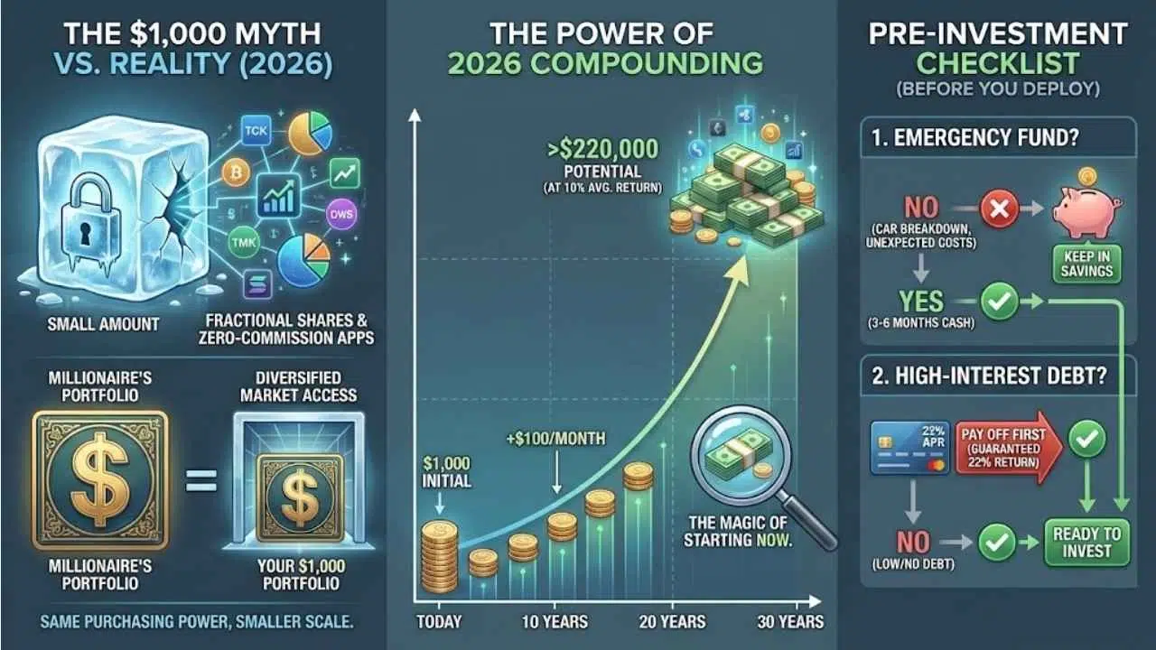 Many beginners freeze up because they think $1,000 isn’t “real” investing money. That is a myth. Thanks to fractional shares and zero-commission trading apps, your $1,000 today has the same purchasing power as a millionaire’s portfolio—just on a smaller scale.
