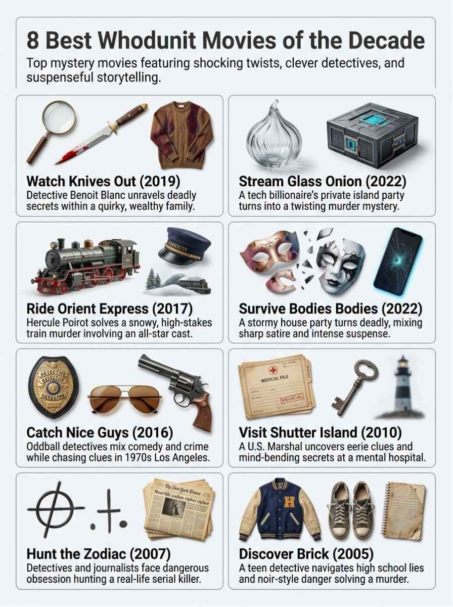 You now have a solid list of the 8 best “whodunit” movies of the decade, packed with suspense, clever storytelling, and shocking twists. Picking any film from this lineup means you are in for intrigue and surprise every single time.