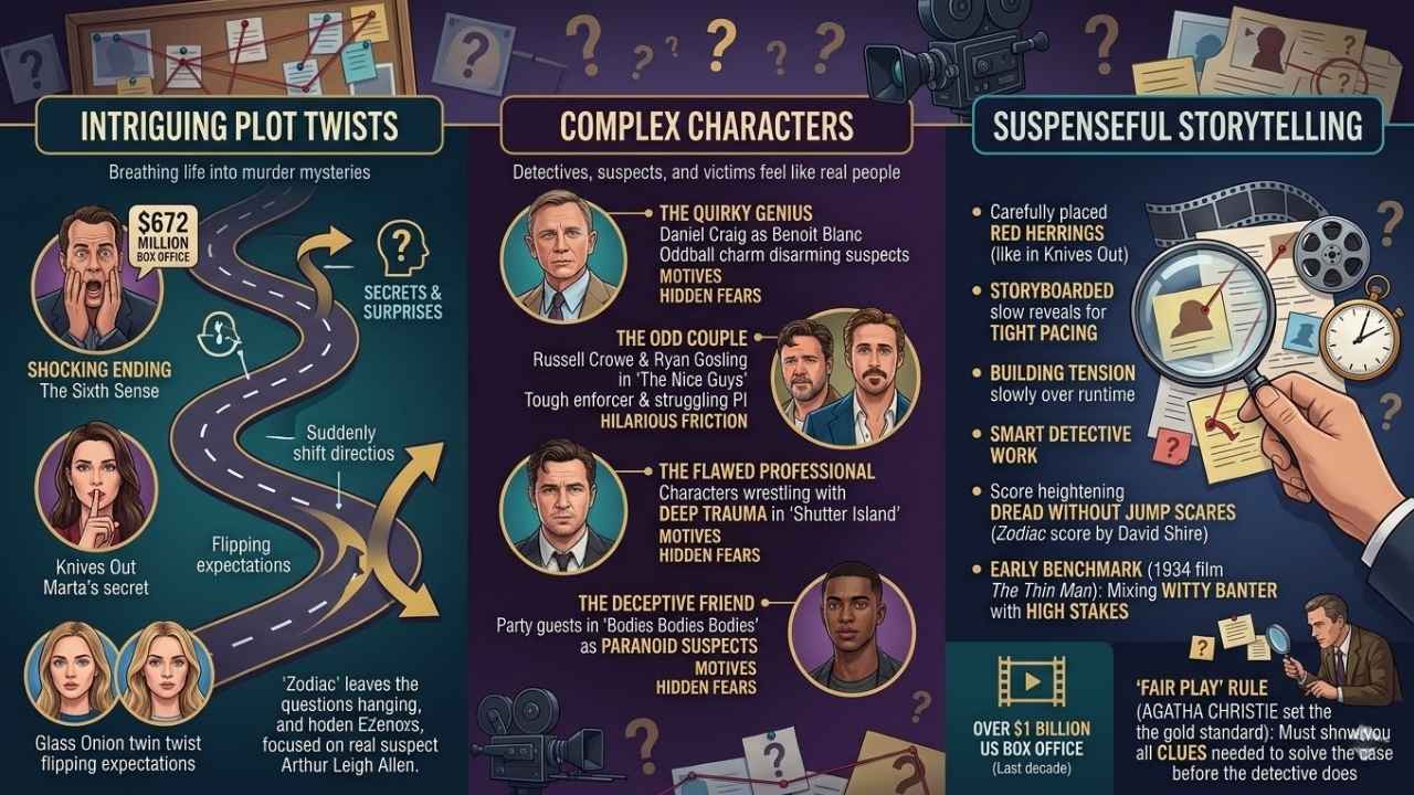 Each film offers its own special flavor of suspense, keeping you guessing at every turn. High production values in modern mysteries mean average budgets regularly top $40 million. With clever twists and standout casts, these stories grab your attention and refuse to let go.