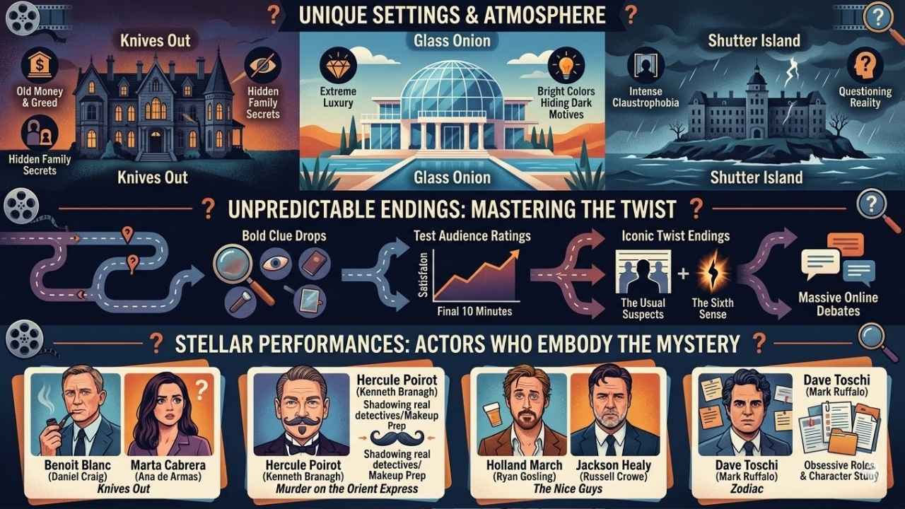 A whodunit movie grabs you with its setting right away. Each film picks its stage carefully, letting the location shape fear, suspicion, or dread until the final clue drops. Here is a quick look at how these settings change the vibe: