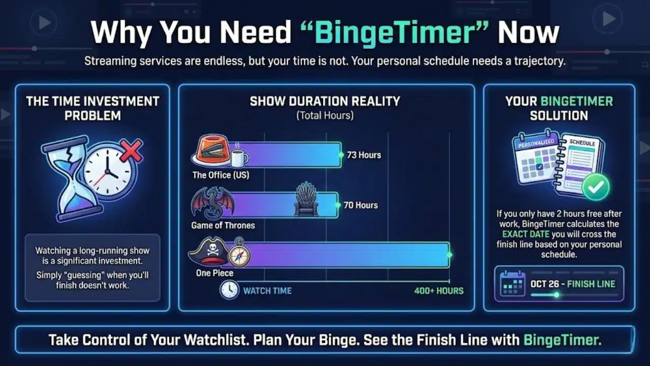Enter BingeTimer. This isn’t just a calculator; it is a reality check for your watchlist. It helps you budget your time as strictly as you budget your finances.