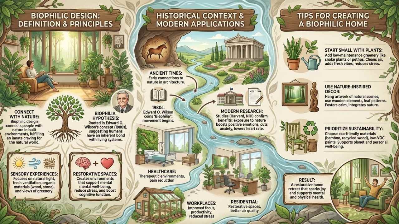 Research, including studies highlighted by the World Health Organization, proves that bringing the outdoors inside significantly reduces stress and elevates emotional well-being. This post explores the transformative power of Biophilic Home Design. By integrating organic elements like indoor plants and abundant natural light, it is possible to seamlessly boost mood, sharpen focus, and spark creativity. Discover actionable, easy tips rooted in environmental psychology to turn any home into a calming, nature-inspired haven.