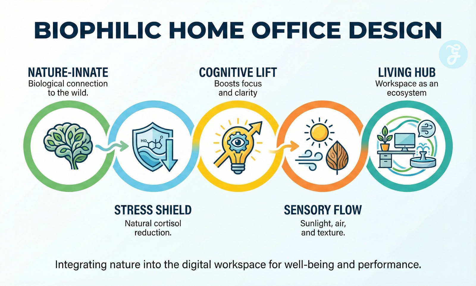To understand why biophilic home office design is so effective, we have to look at our biology. The Biophilia Hypothesis suggests that we have a genetic connection to the natural world. When we are cut off from it, our cognitive performance suffers.