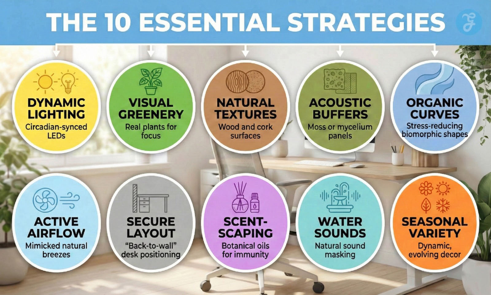 In this guide, we rank the most effective strategies to turn your four walls into a living sanctuary. We look at the evidence. We examine the 2026 trends. Most importantly, we show you how to build a workspace that works as hard for your health as you do for your career.